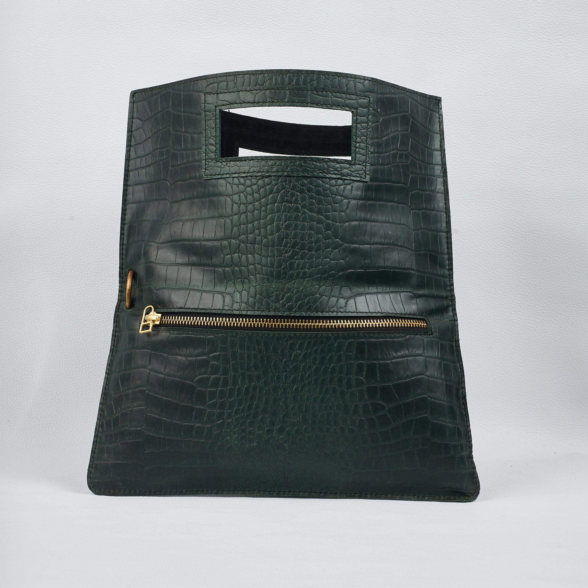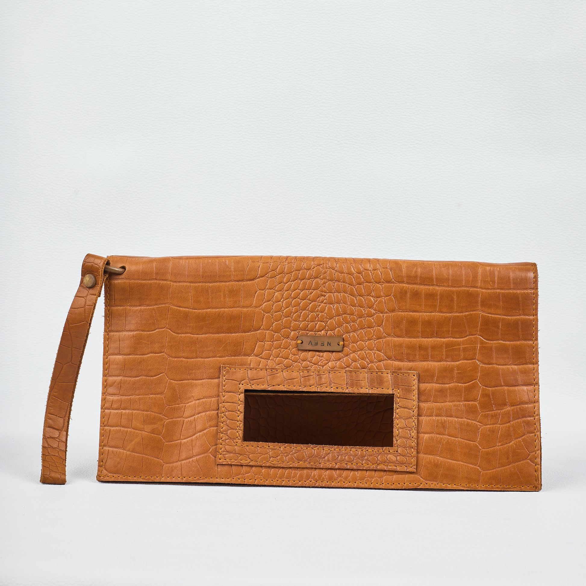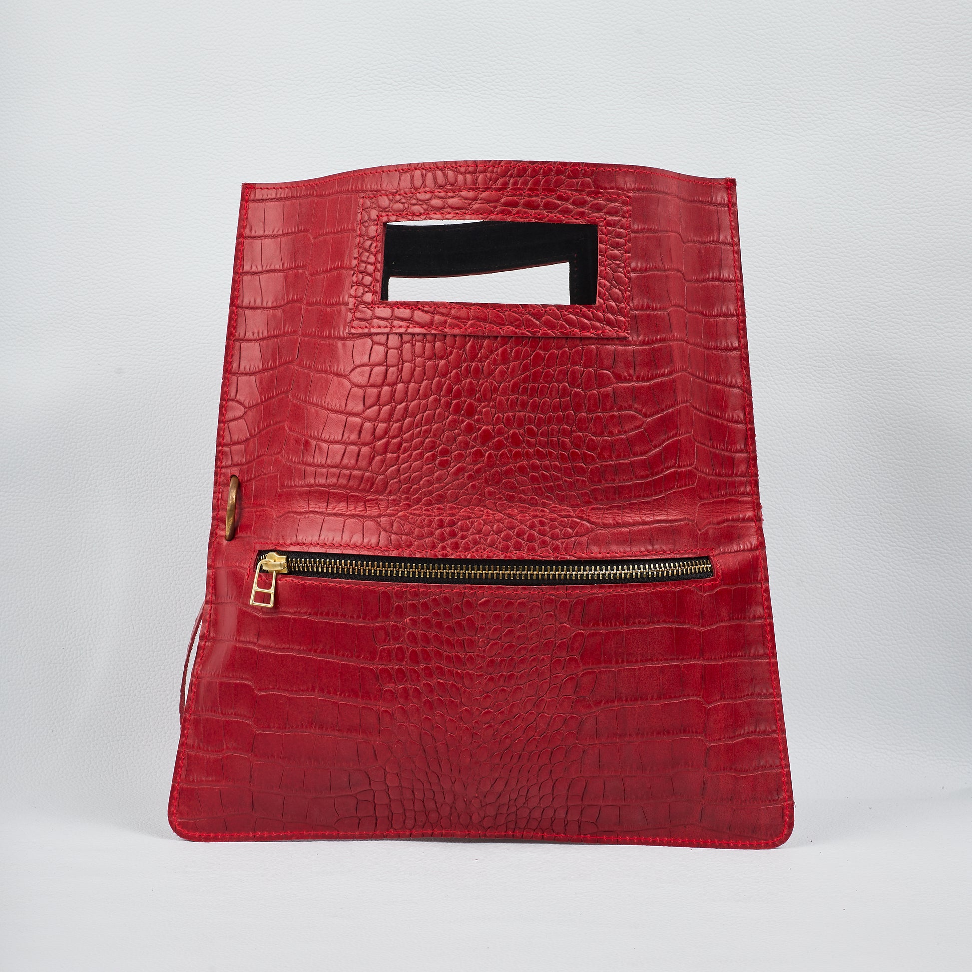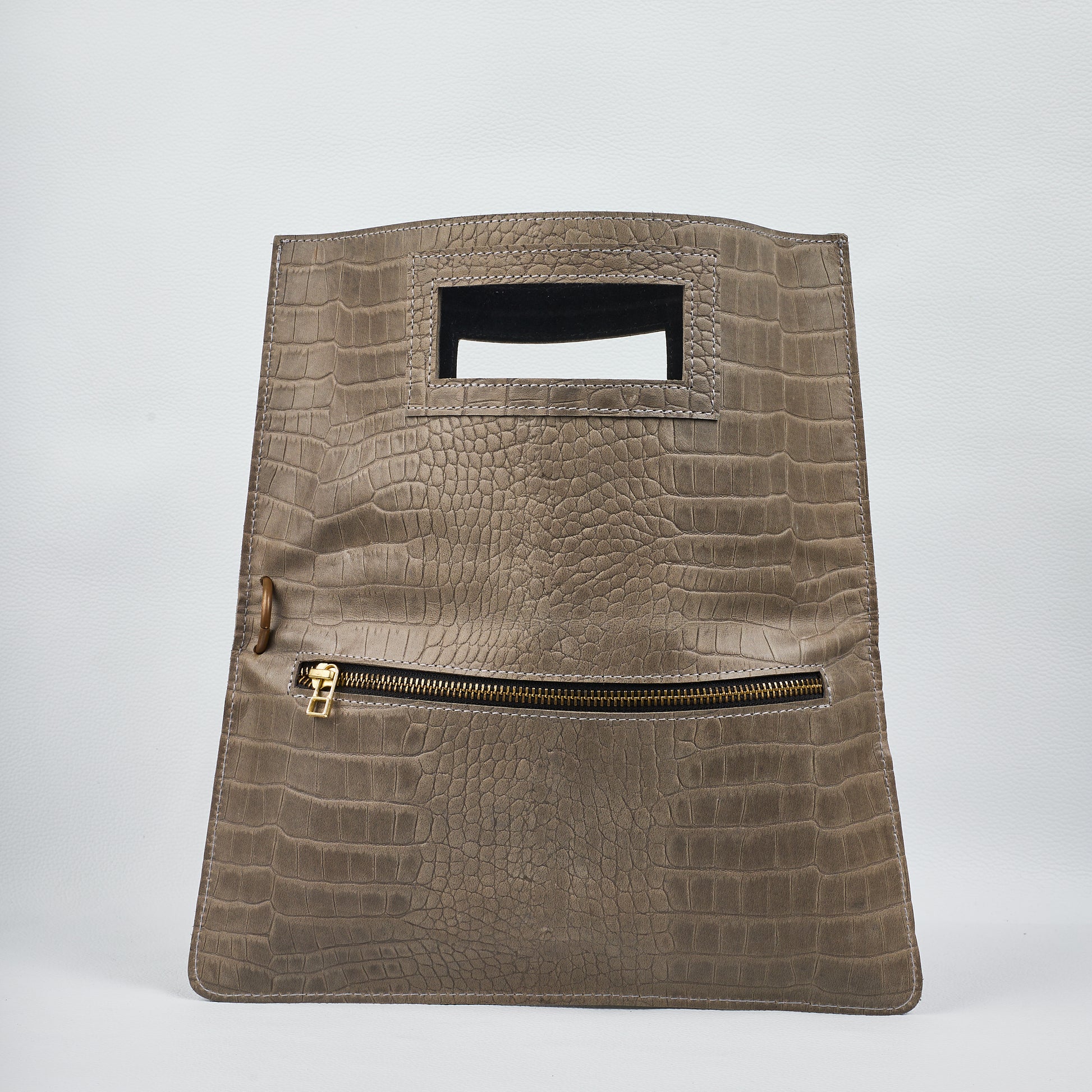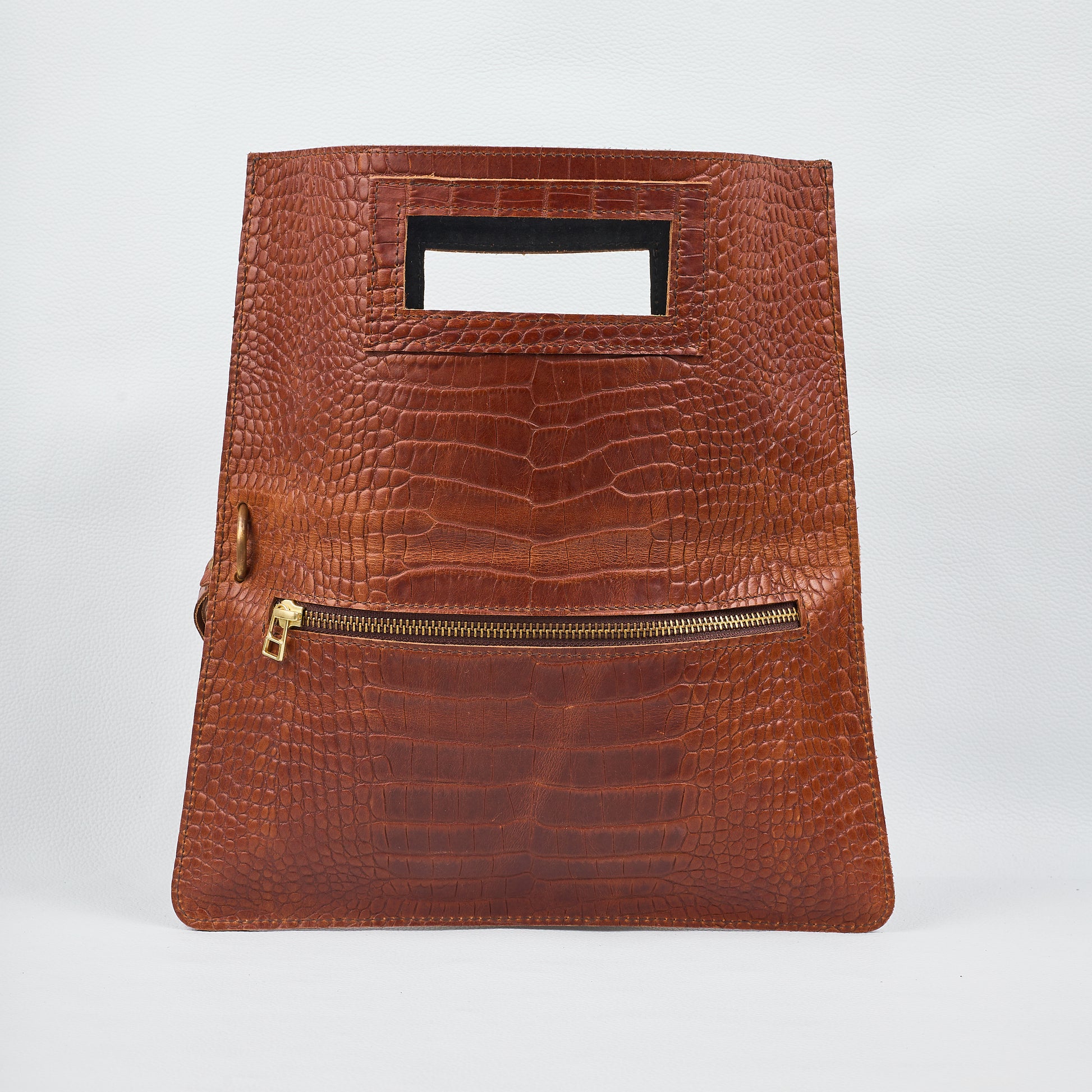 CrocoFlip is crafted from crocodile-embossed genuine leather, accessorized in handmade copper steel.