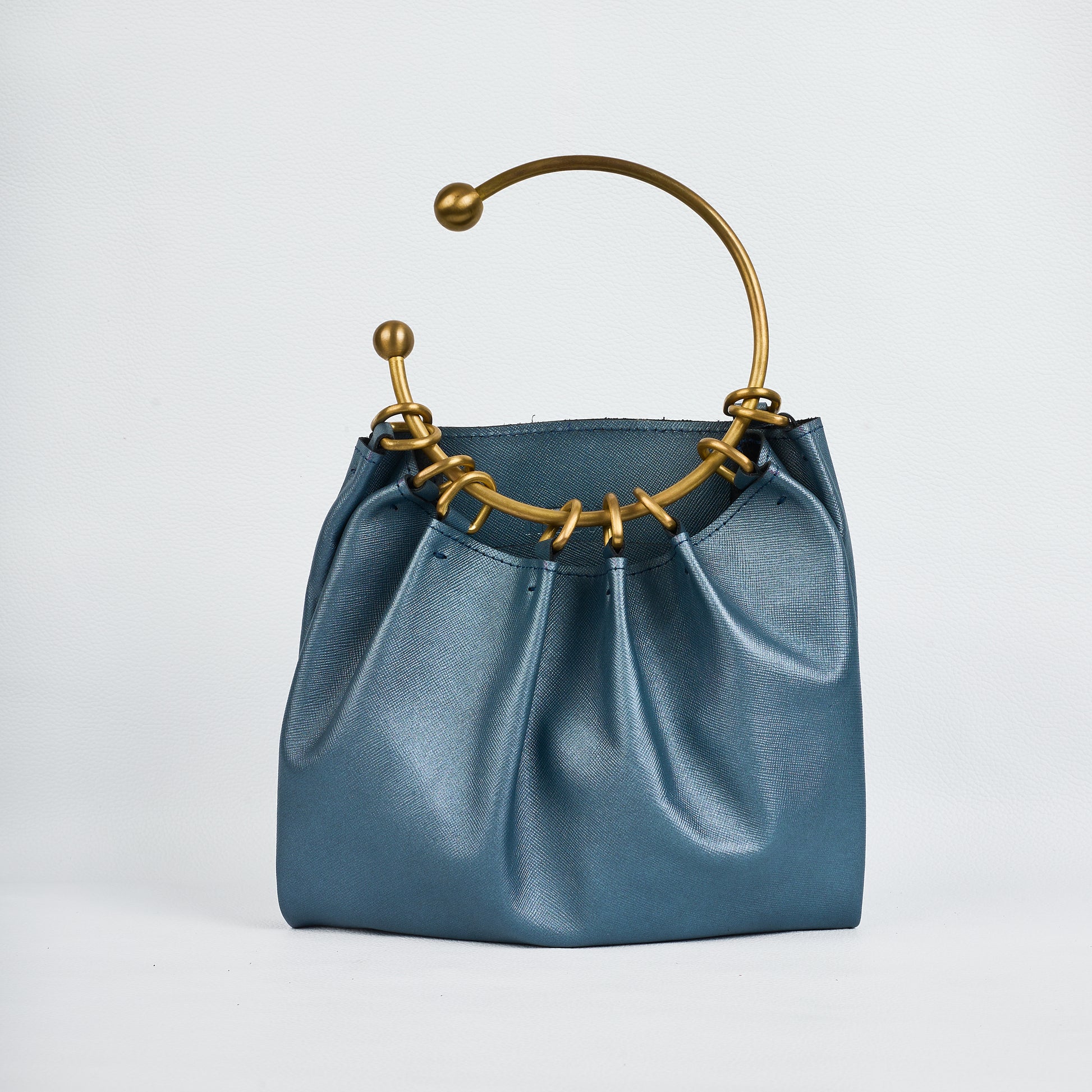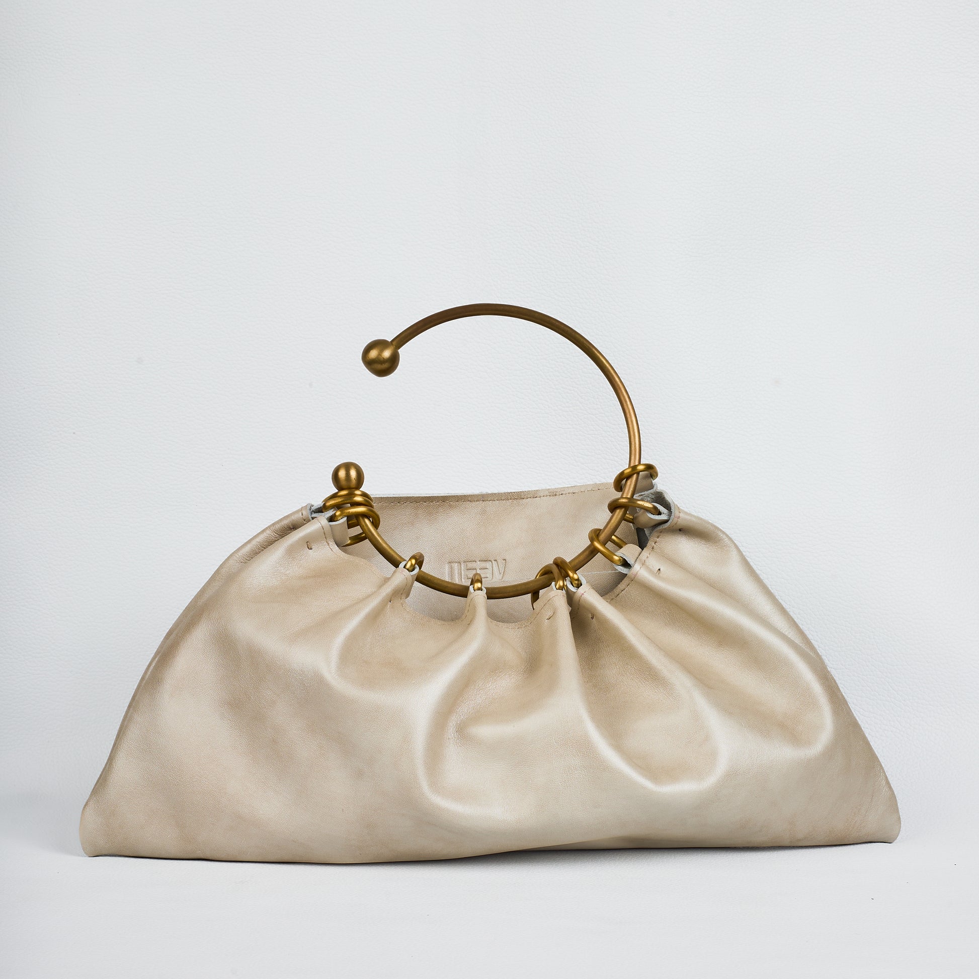 The signature copper ring handle is the heart of Tara’s design. Fully detachable, it can be worn as a jewelry piece — a bold choker that transforms the bag into wearable art. The handle attaches to two adjustable leather loops, giving you multiple ways to carry and style.