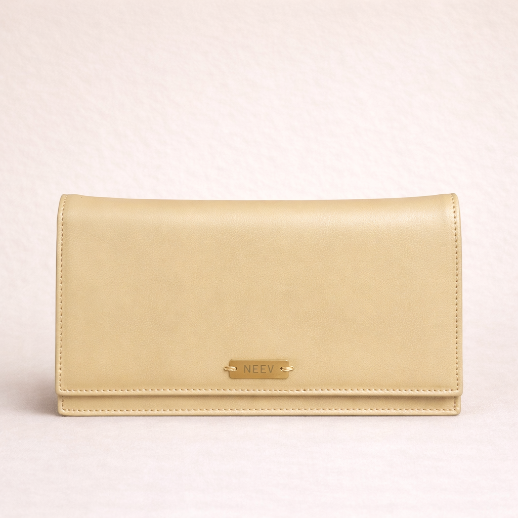 Crafted from full-grain leather, this wallet features a clean, structured exterior finished with Neev’s signature copper lock closure and an engraved copper logo on the back. The interior is thoughtfully organized with a full-length bill compartment, ten card slots, and a secure zip pocket for essentials.